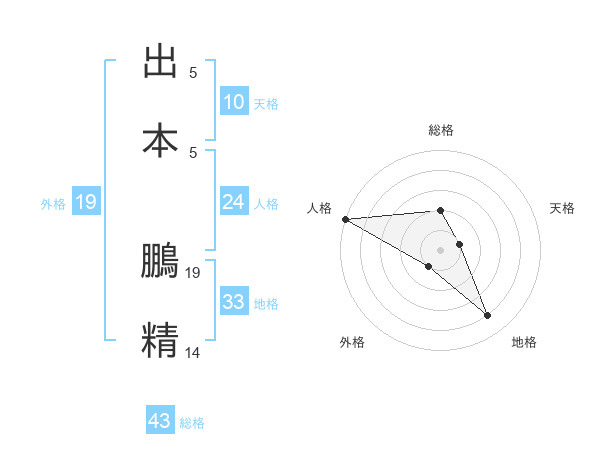 出本 鵬精さんの総格は43画の2点!