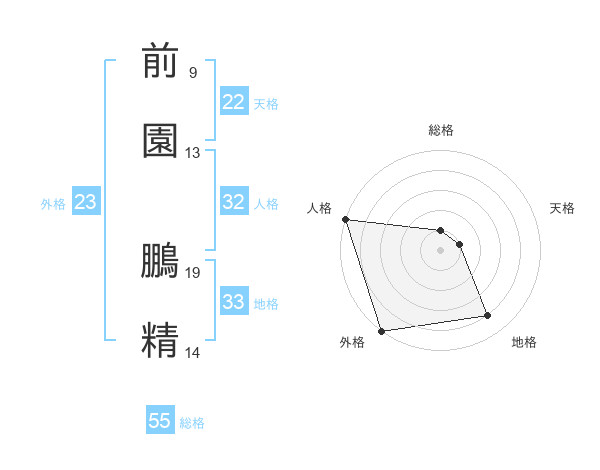 前園 鵬精さんの総格は55画の1点!