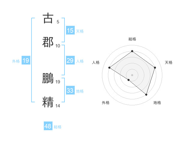 古郡 鵬精さんの天格は15画の4点