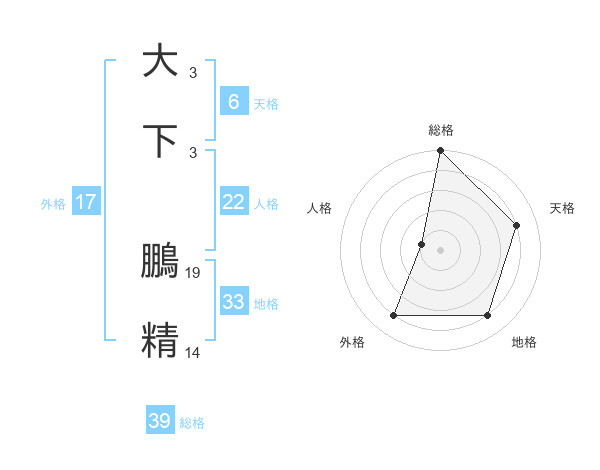 大下 鵬精さんを姓名の画数から五運を鑑定