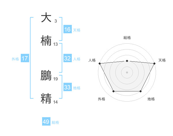 大楠 鵬精さんの総格は49画の2点!
