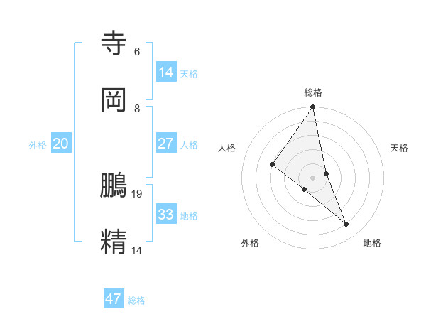 寺岡 鵬精さんを姓名の画数から五運を鑑定