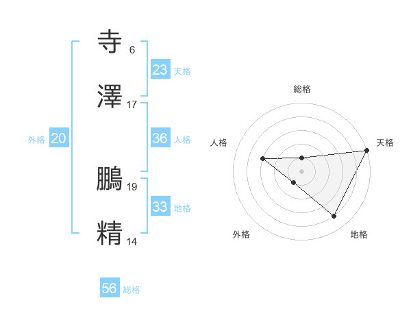 寺澤 鵬精さんの総格は56画の1点!