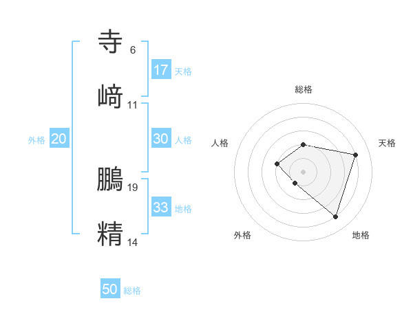 寺﨑 鵬精さんの総格は50画の2点!