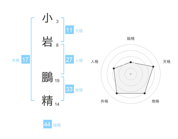 小岩 鵬精さんの総格は44画の2点!
