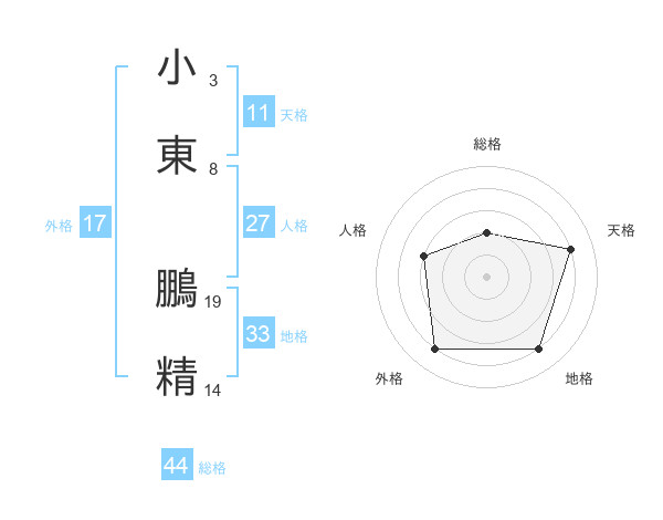 小東 鵬精さんを姓名の画数から五運を鑑定
