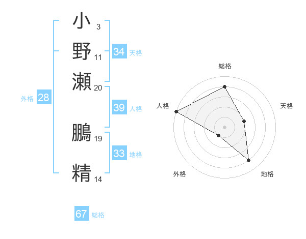 小野瀬 鵬精さんを姓名の画数から五運を鑑定
