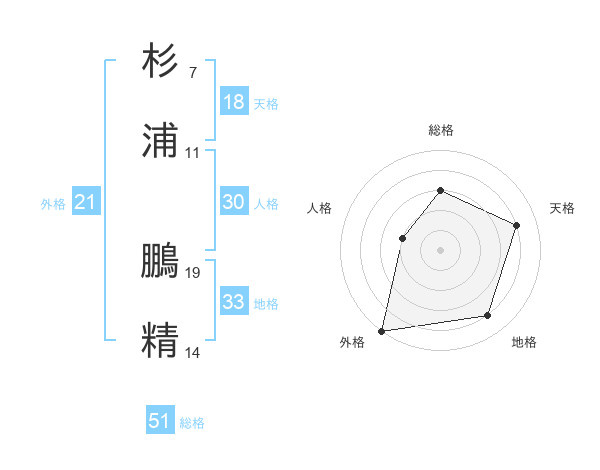 杉浦 鵬精さんの総格は51画の3点!
