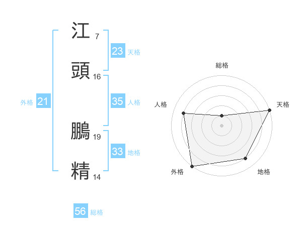 江頭 鵬精さんの総格は56画の1点!