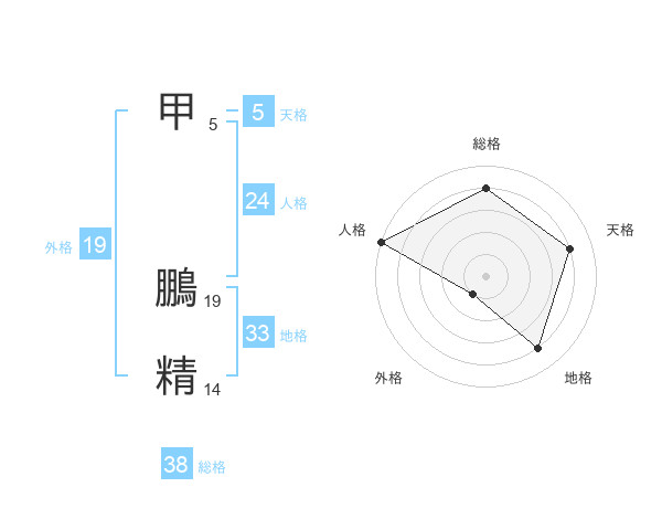 甲 鵬精さんの総格は38画の4点!