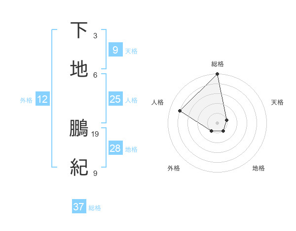 下地 鵬紀さんを姓名の画数から五運を鑑定