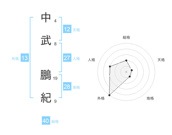 中武 鵬紀さんの総格は40画の2点!
