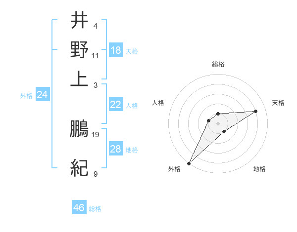 井野上 鵬紀さんを姓名の画数から五運を鑑定
