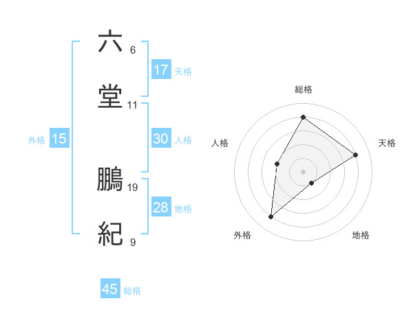 六堂 鵬紀さんを姓名の画数から五運を鑑定