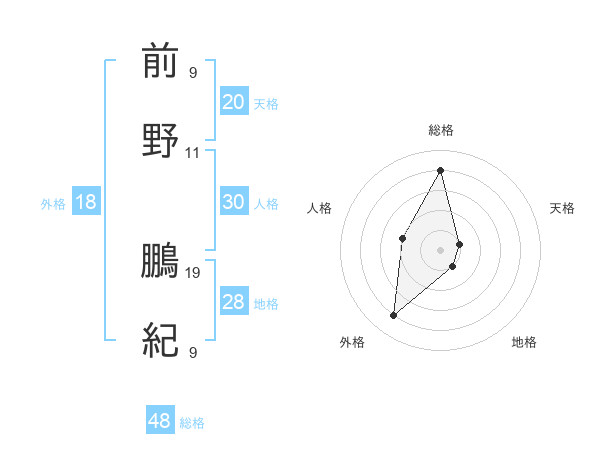 前野 鵬紀さんの総格は48画の4点!