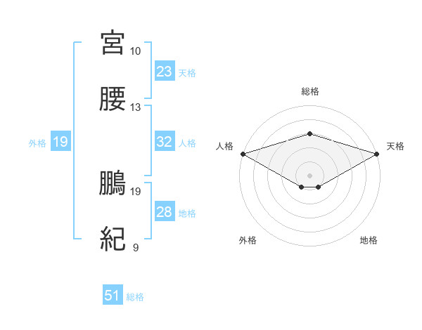 宮腰 鵬紀さんを姓名の画数から五運を鑑定