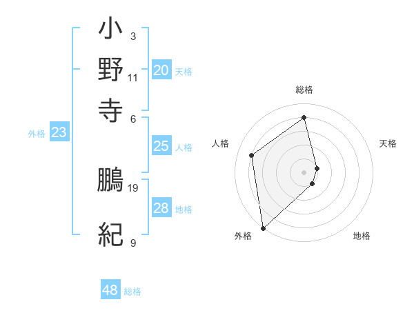 小野寺 鵬紀さんの外格は23画の5点!