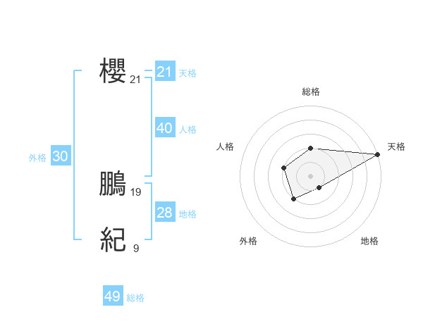 櫻 鵬紀さんの天格は21画の5点!