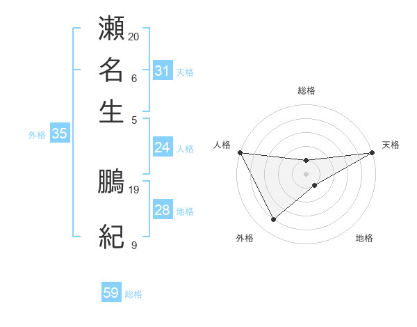 瀬名生 鵬紀さんの天格は31画の5点!
