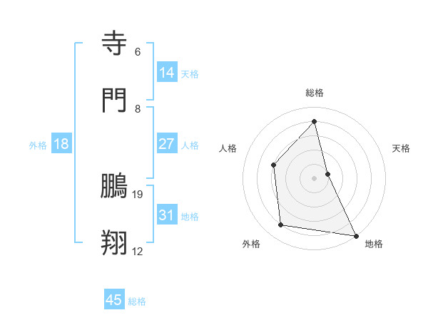 寺門 鵬翔さんを姓名の画数から五運を鑑定