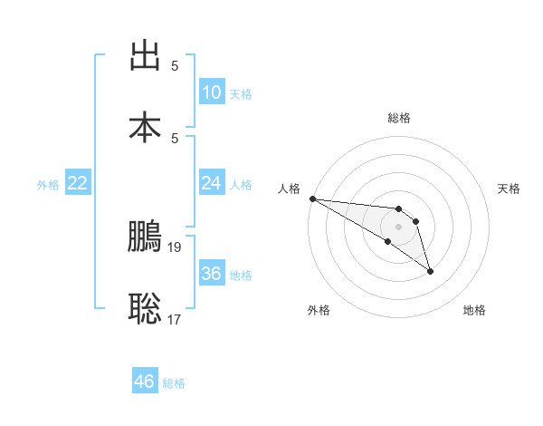 出本 鵬聡さんを姓名の画数から五運を鑑定