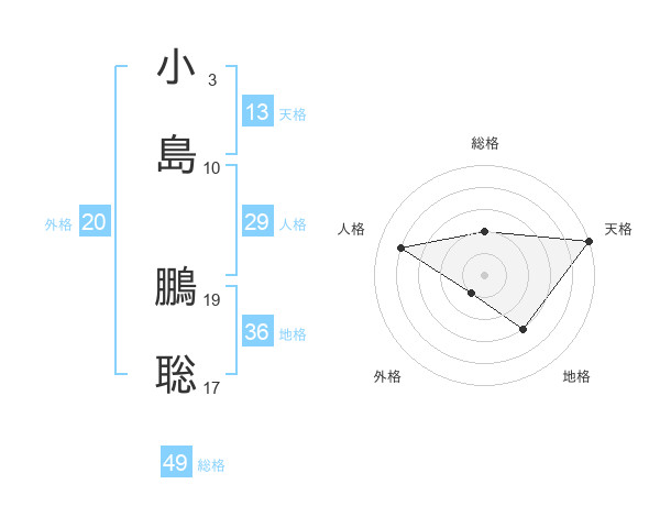 小島 鵬聡さんを姓名の画数から五運を鑑定