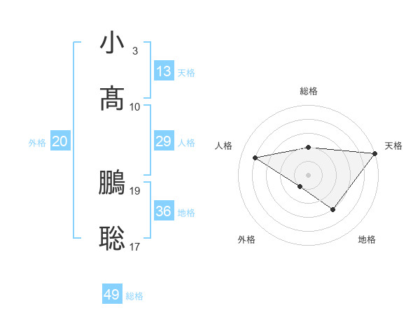 小髙 鵬聡さんを姓名の画数から五運を鑑定