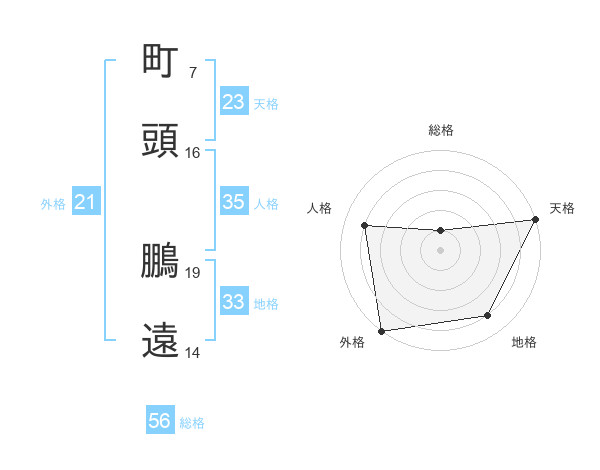 町頭 鵬遠さんの総格は56画の1点!