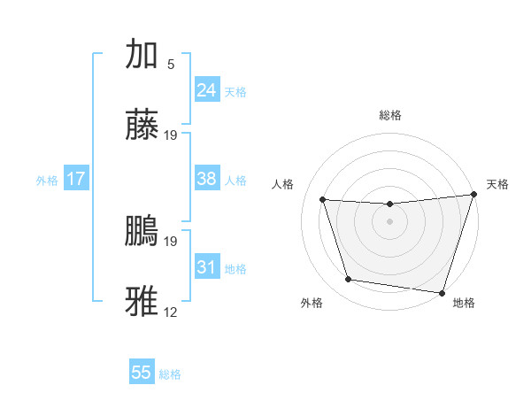 加藤 鵬雅さんの総格は55画の1点!