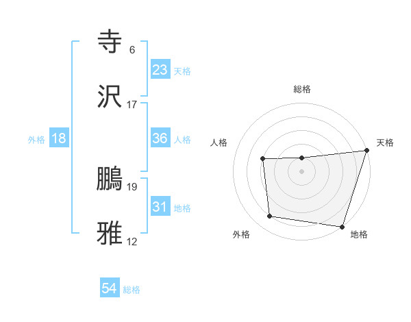 寺沢 鵬雅さんの総格は54画の1点!