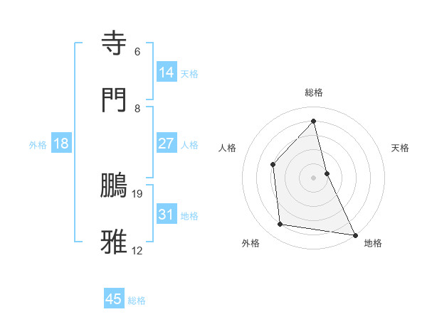 寺門 鵬雅さんの総格は45画の4点!