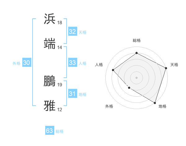 浜端 鵬雅さんの総格は63画の4点!