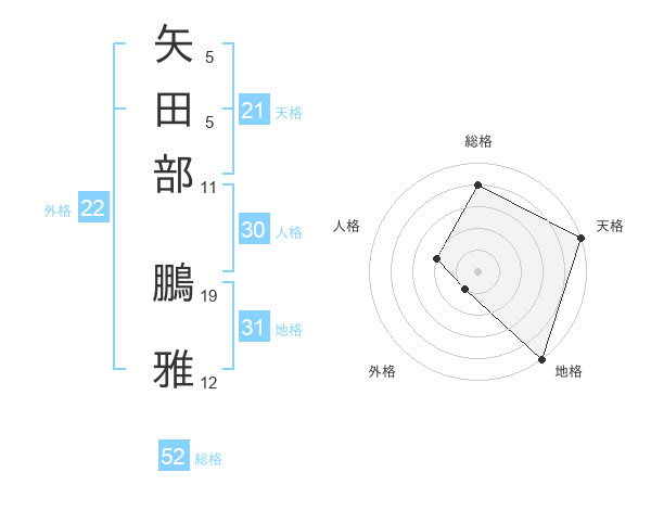 矢田部 鵬雅さんを姓名の画数から五運を鑑定