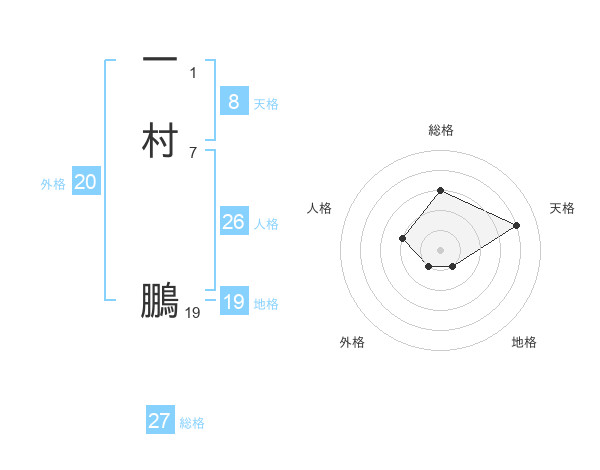 一村 鵬さんの天格は8画の4点!