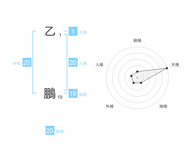 乙 鵬さんの総格は20画の1点!