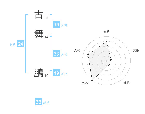 古舞 鵬さんの総格は38画の4点!