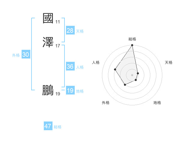 國澤 鵬さんを姓名の画数から五運を鑑定