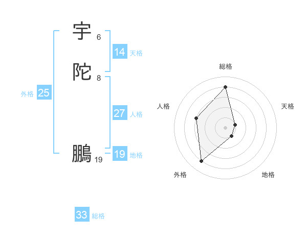 宇陀 鵬さんの総格は33画の4点!