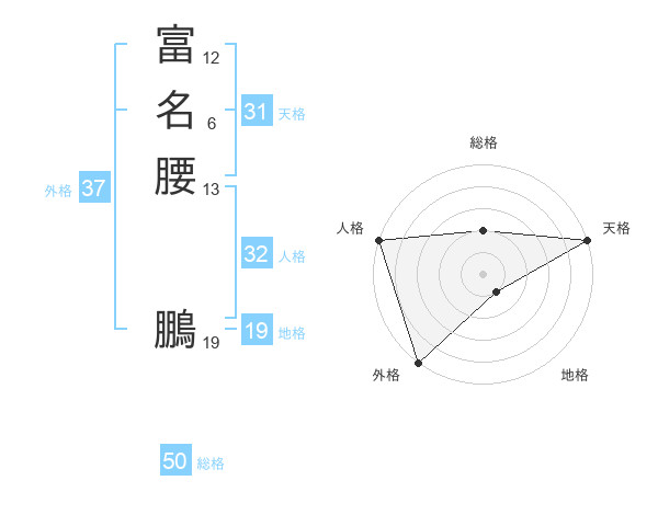 富名腰 鵬さんの総格は50画の2点!
