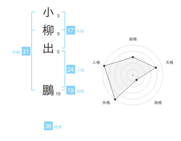 小柳出 鵬さんの外格は31画の5点!