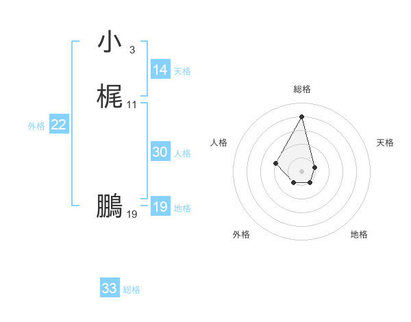 小梶 鵬さんを姓名の画数から五運を鑑定