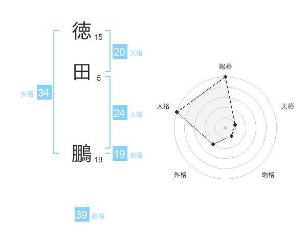 徳田 鵬さんを姓名の画数から五運を鑑定