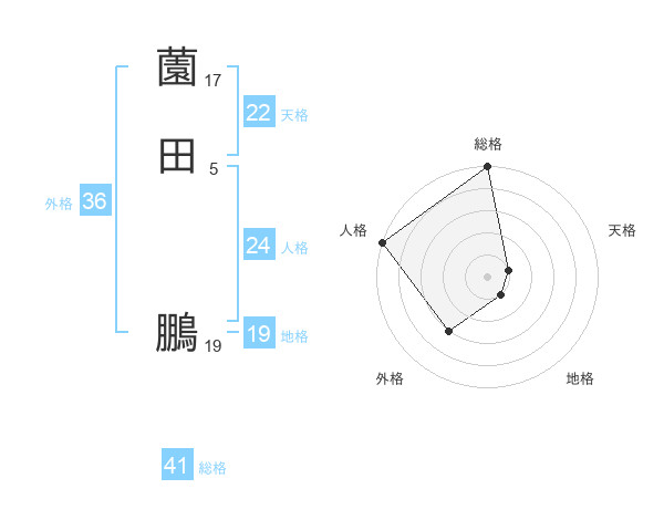 薗田 鵬さんを姓名の画数から五運を鑑定