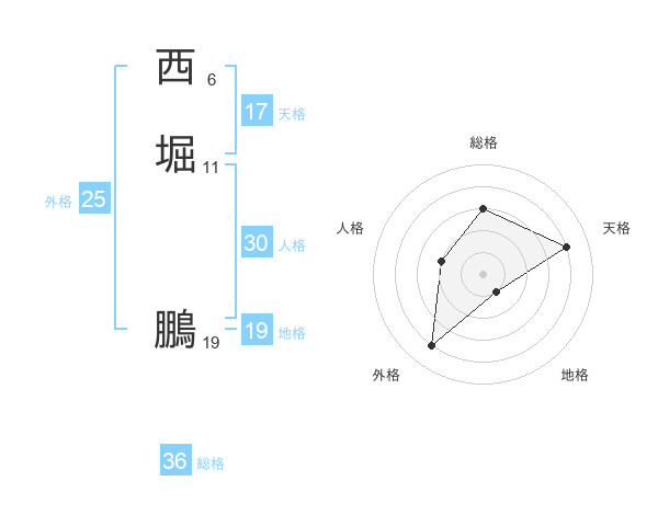 西堀 鵬さんの天格は17画の4点!