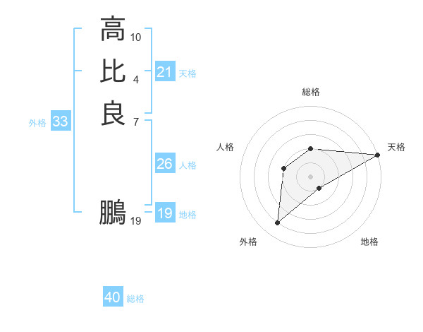 高比良 鵬さんの天格は21画の5点!