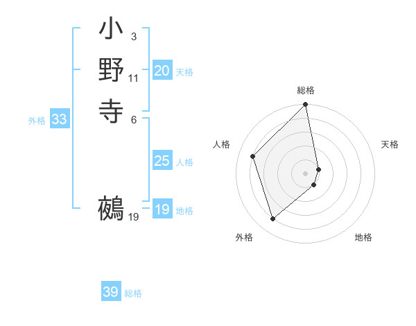 小野寺 鵺さんの総格は39画の5点!