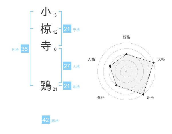 小椋寺 鶏さんを姓名の画数から五運を鑑定