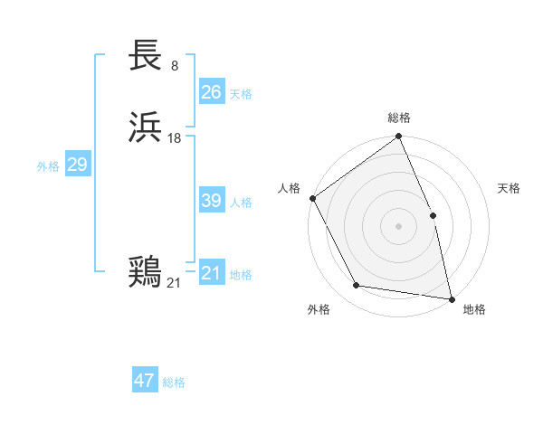 長浜 鶏さんを姓名の画数から五運を鑑定