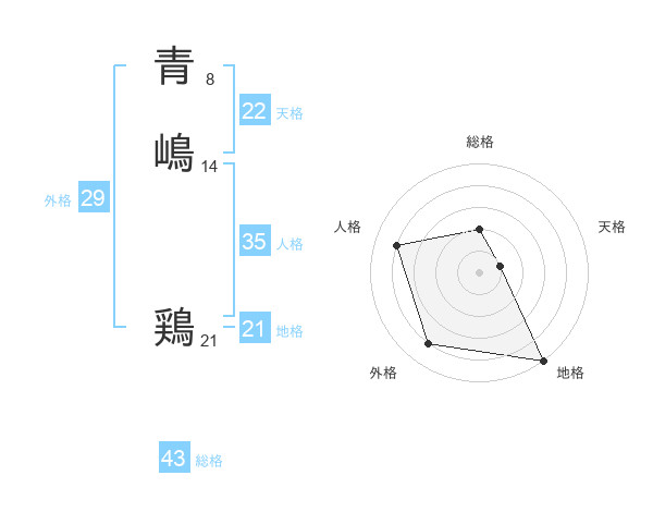 青嶋 鶏さんの天格は22画の1点!