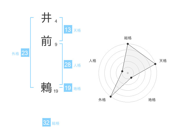 井前 鶫さんの天格は13画の5点!